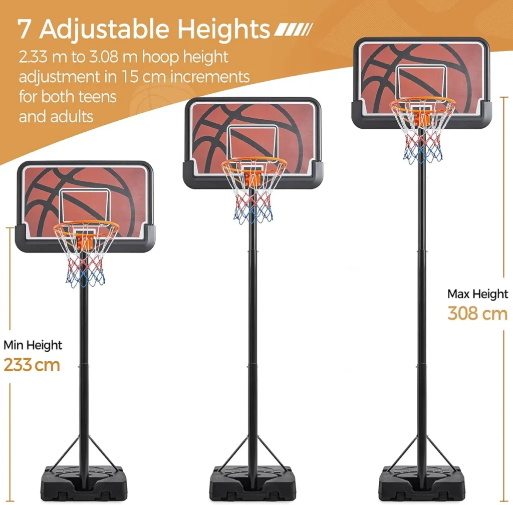 This is an adjustable basketball stand. It’s portable and moveable. You need to add water or sand to make it firm and sturdy.