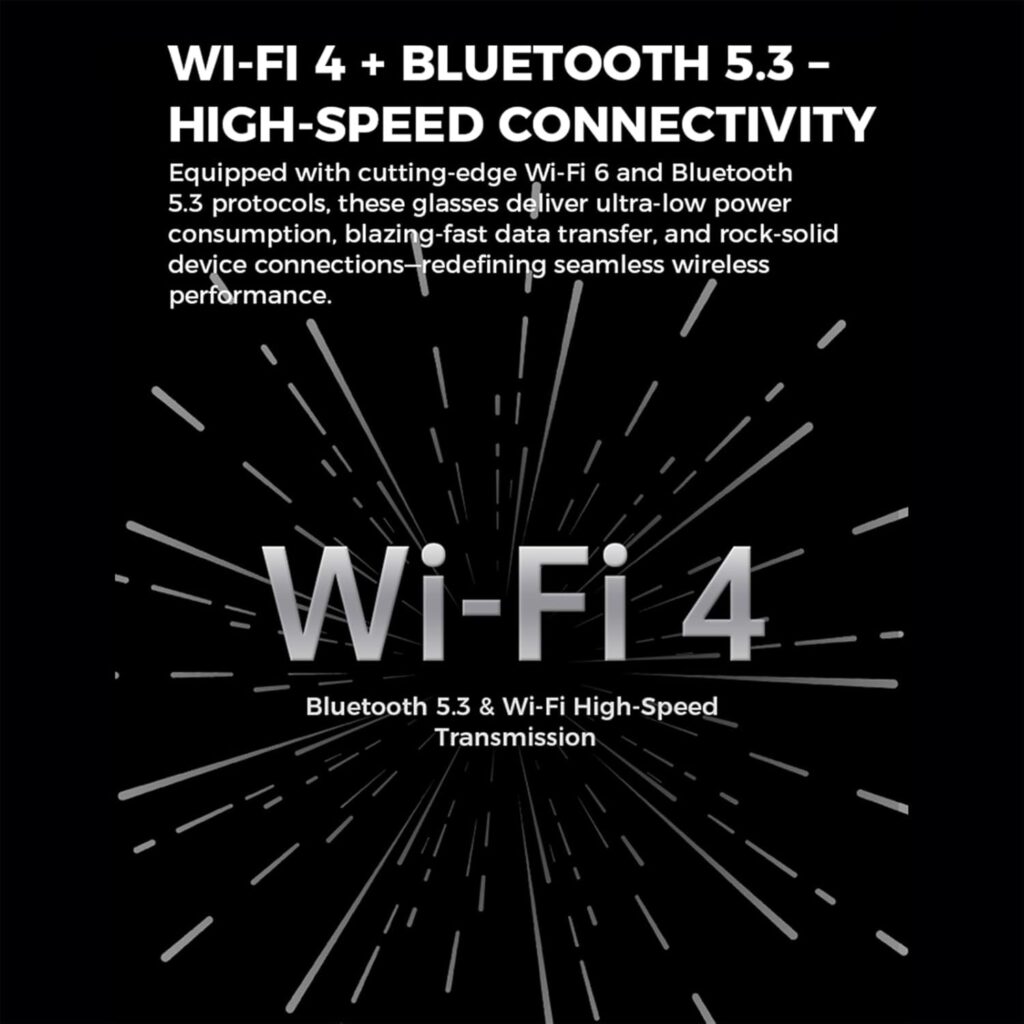 These glasses connect to your phone or laptop with super-fast Wi-Fi and Bluetooth 5.3. No delays, no stress, just smooth connection.